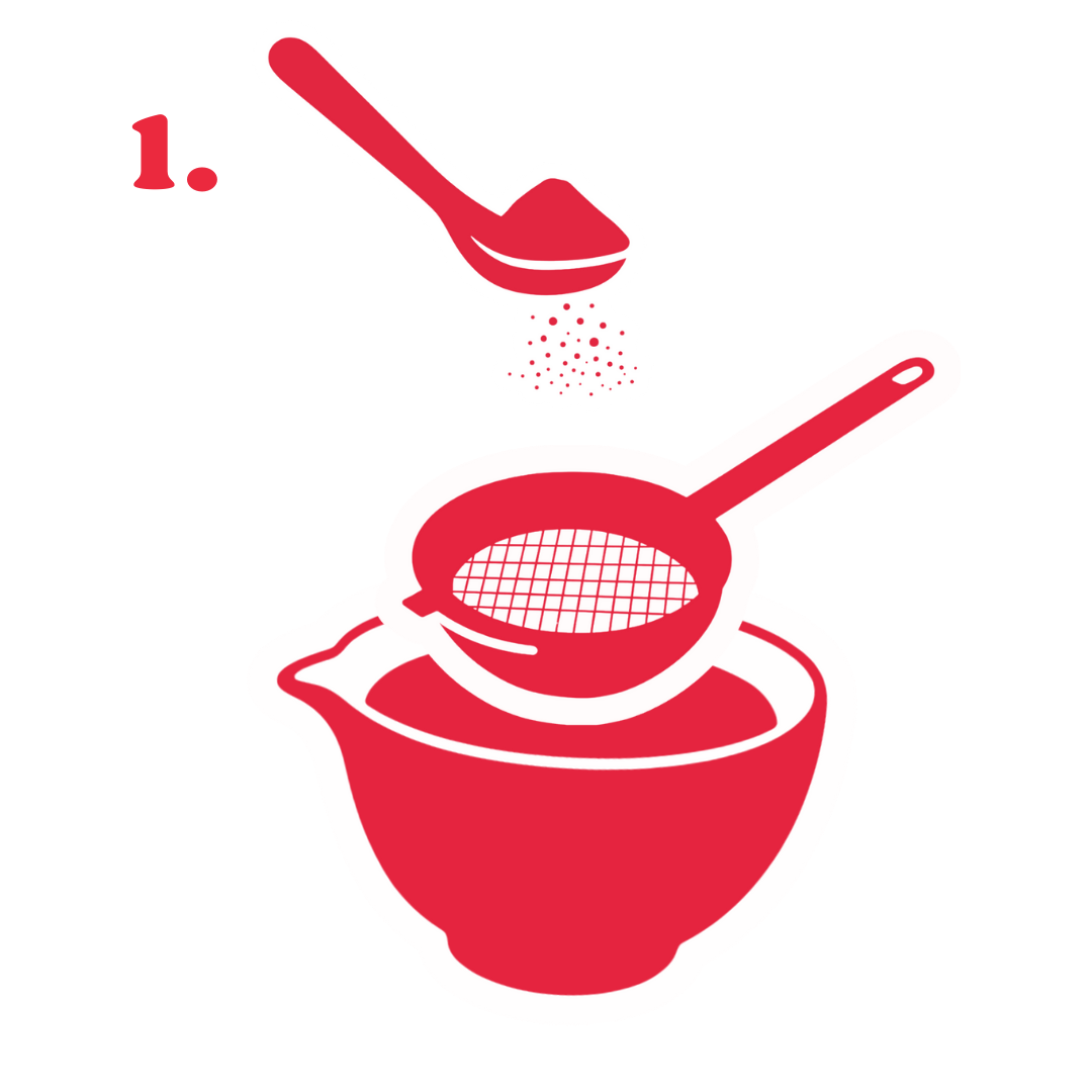 Ajoute et tamise 2g de matcha